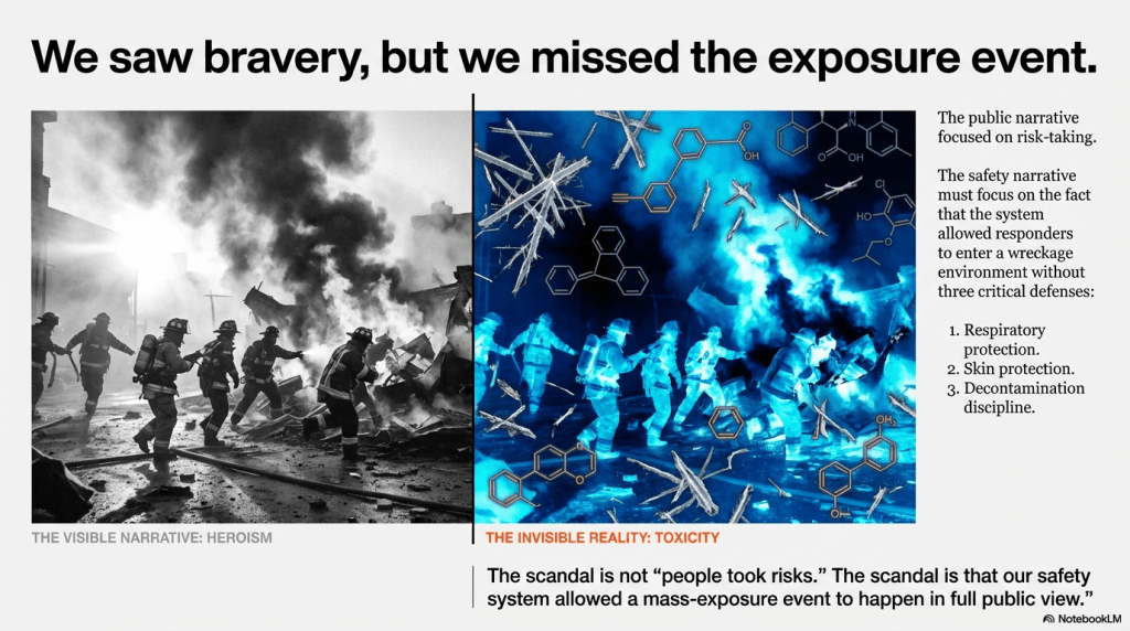 What this means for AI-171: if people entered the scene without respiratory protection, the system did not merely “take risk.” It violated the only rational default for an unmeasurable hazard: assume it’s present until proven otherwise.