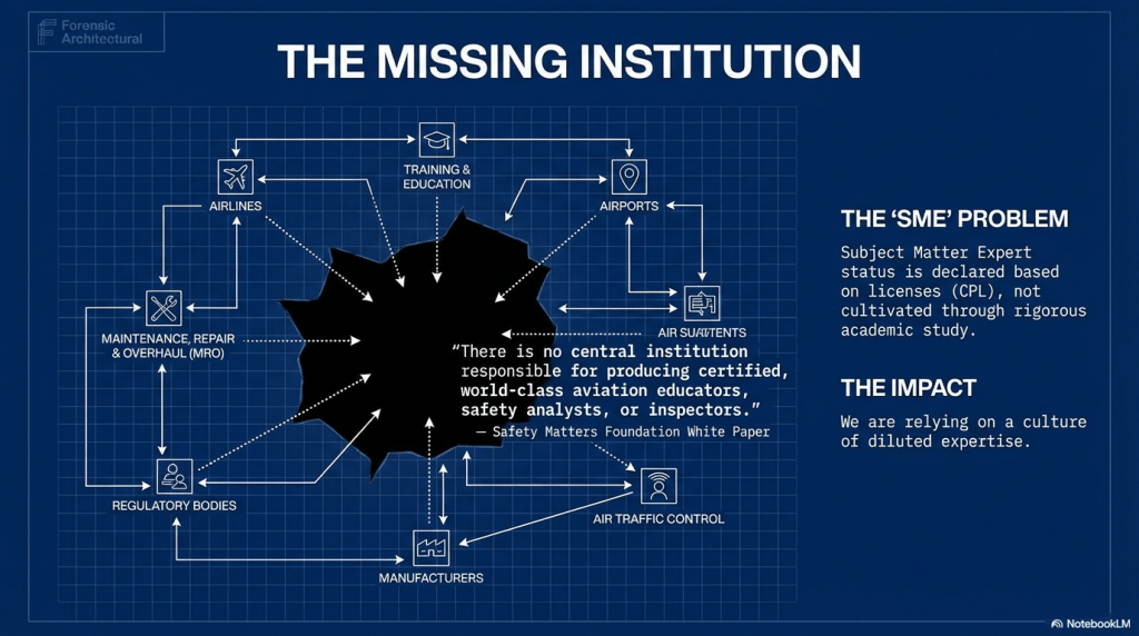 “There is no central institution responsible for producing certified, world-class aviation educators, safety analysts, or inspectors.”