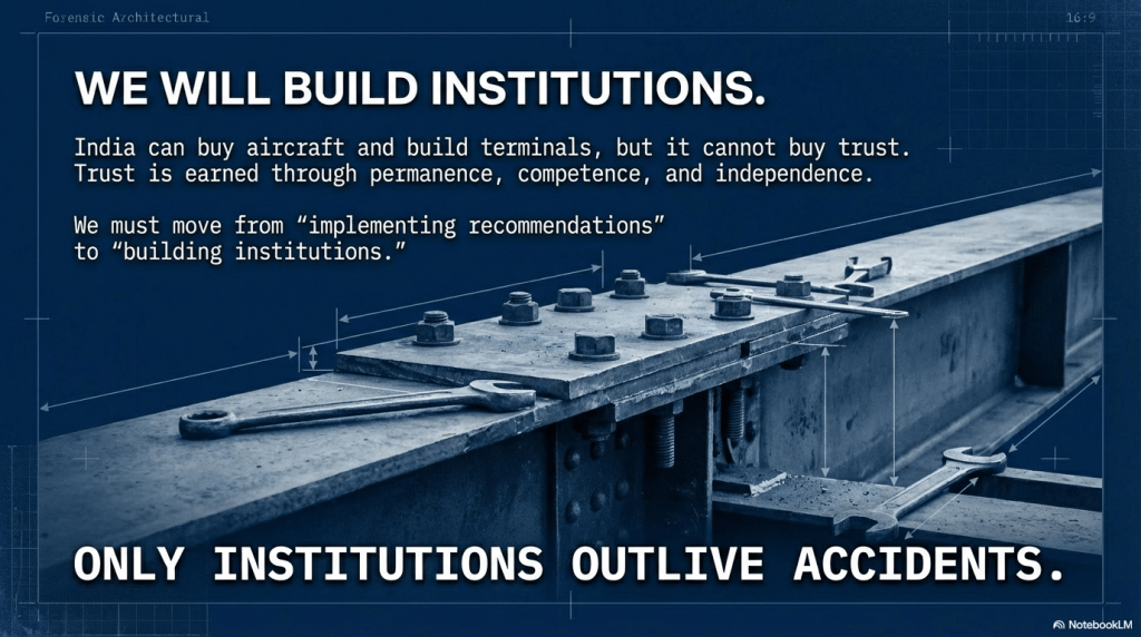 Because only institutions outlive accidents. Only institutions prevent recurrence. Only institutions convert tragedy into lasting safety.