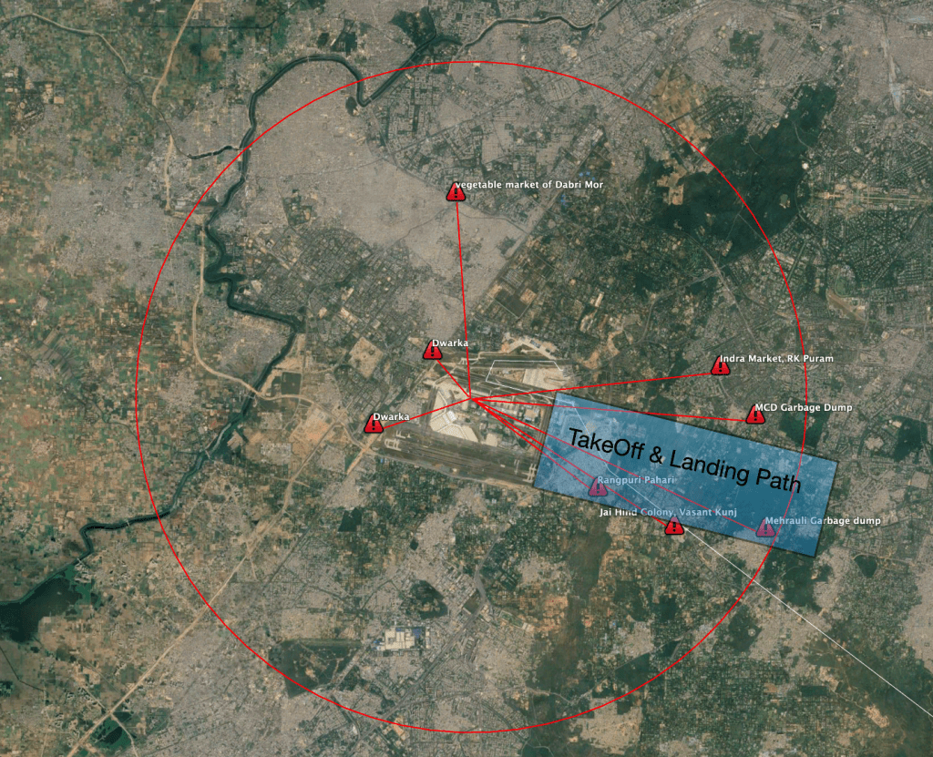 Delhi offers one of the clearest illustrations of how off-airport conditions can generate aviation risk. The hazard hotspots around the capital’s airport point directly to failures in the surrounding urban environment. These are not minor irregularities. They represent a direct challenge to Rule 91 of the Aircraft Rules, 1937, which prohibits slaughtering, flaying, and the dumping of rubbish within a 10 km radius of an aerodrome.
